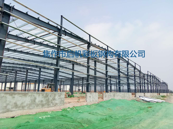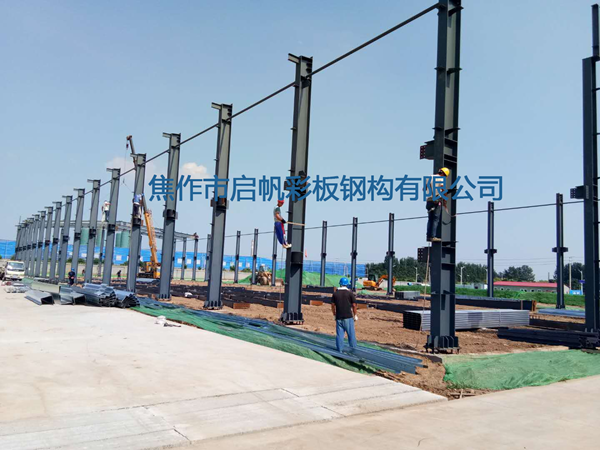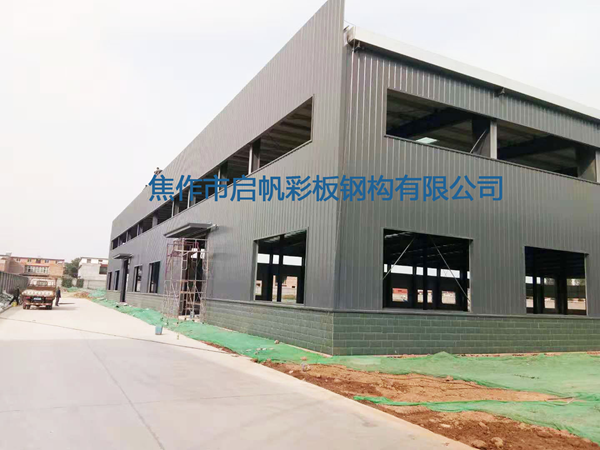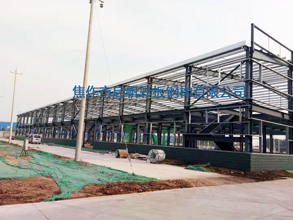2018年我公司與焦作轄區內兩家大型企業分別簽訂了鋼構結構廠房的制作及施工安裝合同,目前正在施工中,兩個項目主體廠房鋼架已全部吊裝完成,其中部分廠房墻板及頂板已全部安裝完畢。